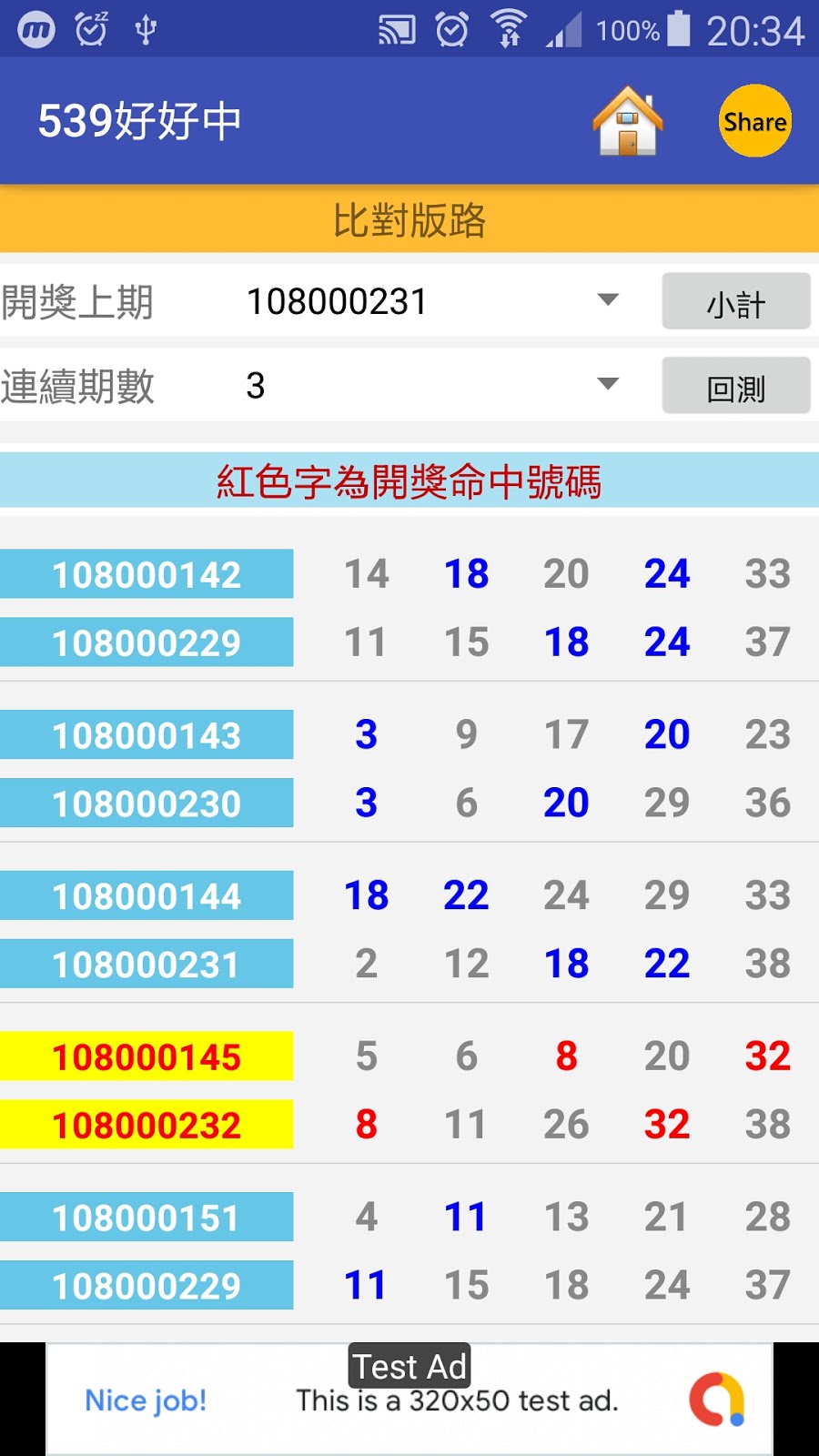 今彩539[108000229] 5中2 - APP * 3 小計第1名中獎